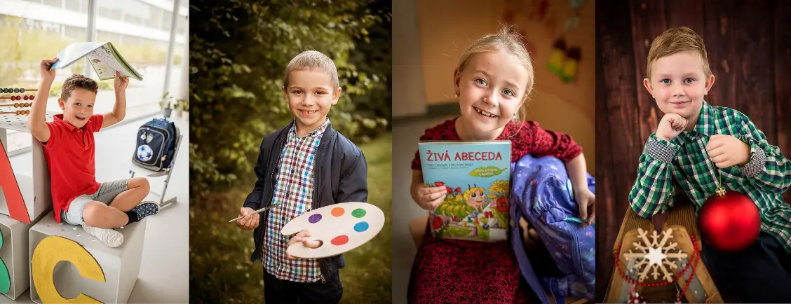 Portrétní fotografie ze školy nebo školky jsou krásnou vzpomínkou na dětské období, ke kterému se všichni rádi vracíme i po mnoha letech. Mohou být krásným dárkem pro prarodiče i součástí rodinného alba.
